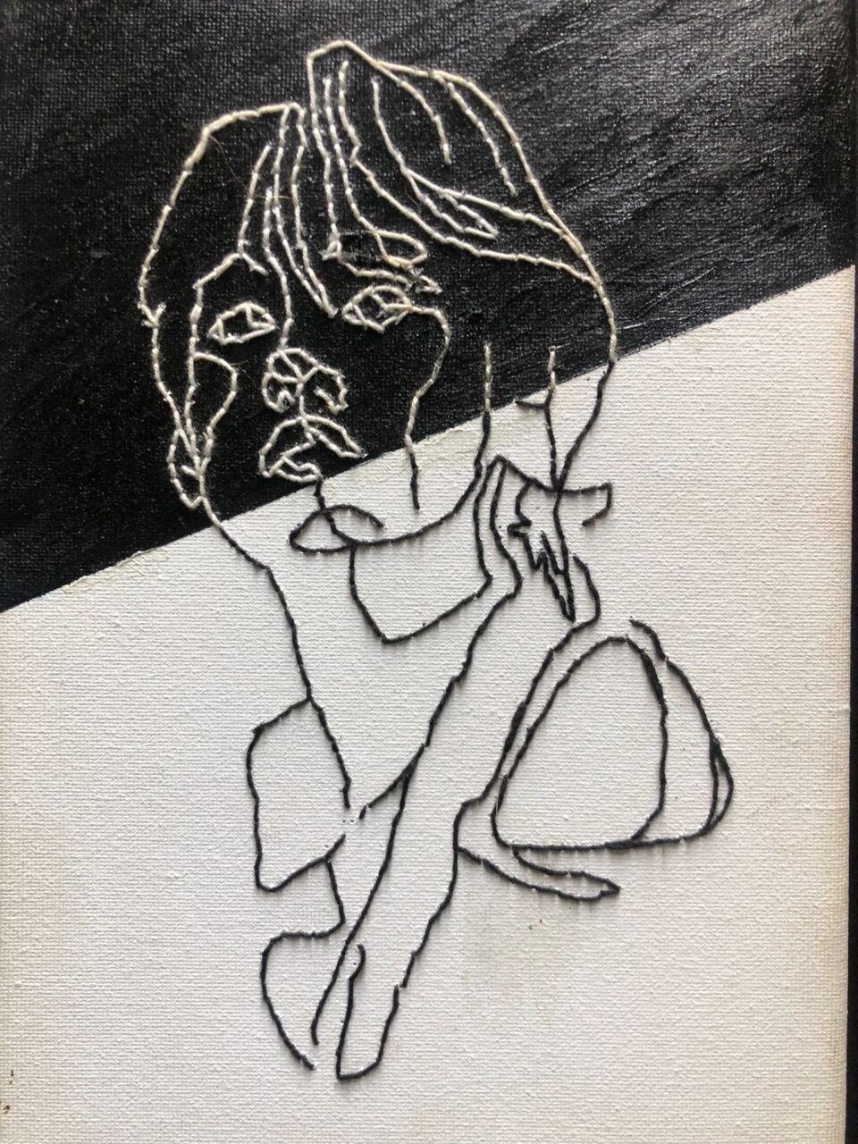 - Una volta asciugato, inizio a ricamare con dei fili complementari allo sfondo